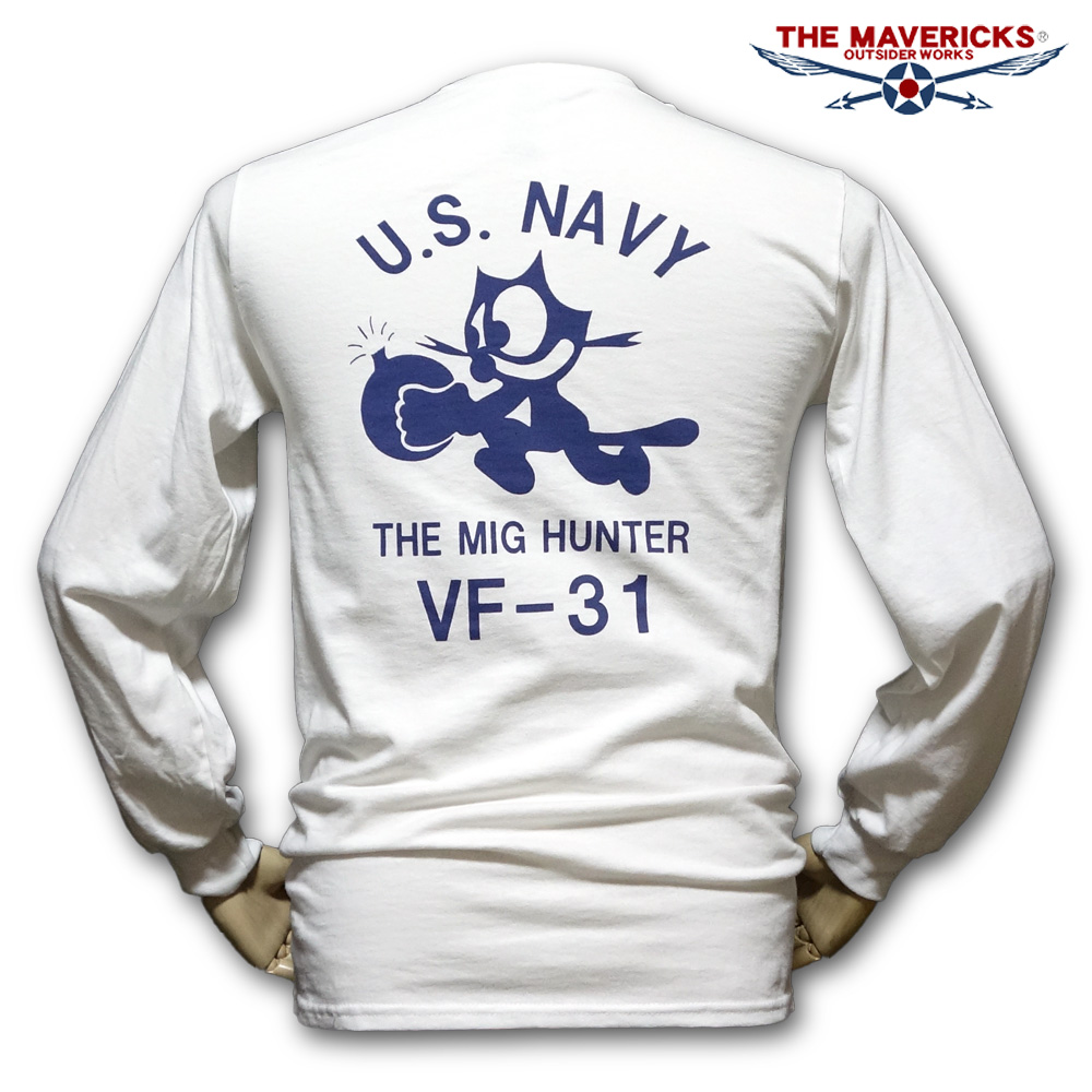 ミリタリー 長袖 Tシャツ メンズ MAVEVICKS ブランド 綿100% NAVY 米海軍 黒猫 ホワイト 白