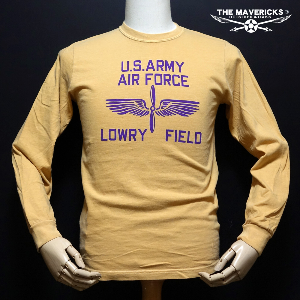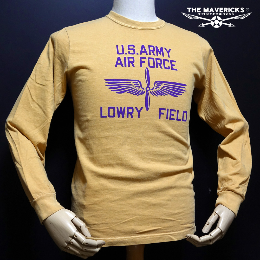 長袖Tシャツ メンズ 後染め ビンテージ加工 ミリタリー LOWRY FIELD ARMYエアフォース米陸軍航空隊 マスタード イエロー